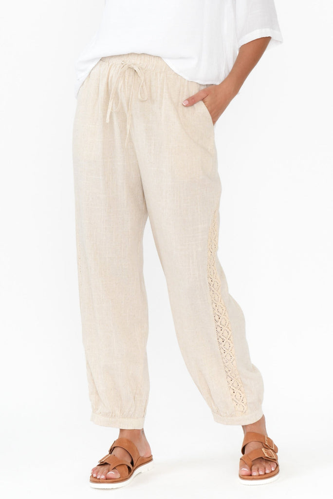 Lindsay Lace Tapered Linen Blend Pants Beige